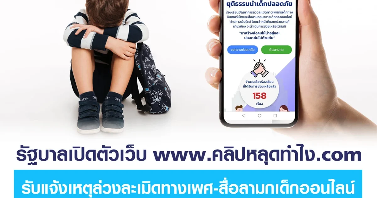 รัฐบาลเปิดตัวเว็บ www.คลิปหลุดทำไง.com รับแจ้งเหตุล่วงละเมิดทางเพศ-สื่อลามกเด็กผ่านออนไลน์ สามารถแจ้งเบาะแสหรือขอความช่วยเหลือได้ตลอด 24 ชั่วโมง