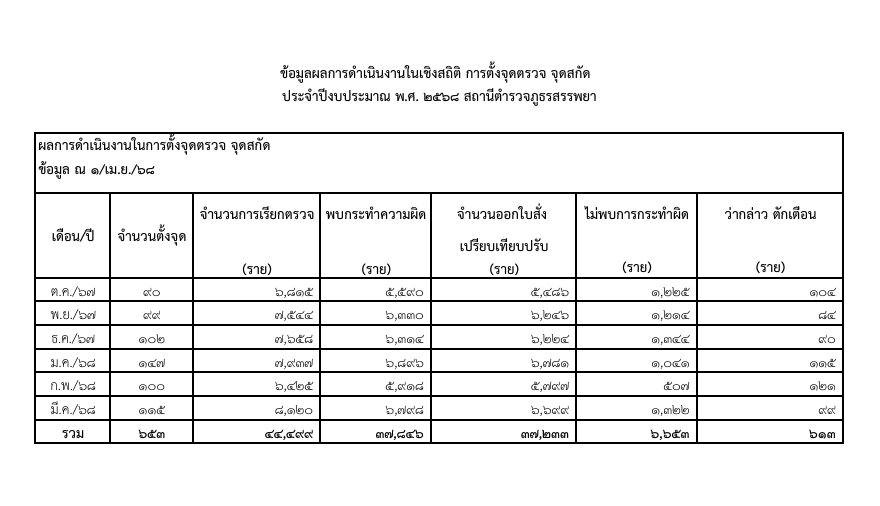 สถิติการตั้งจุดตรวจ จุดสกัด 6 เดือนแรก(ต.ค.67-มี.ค.68)