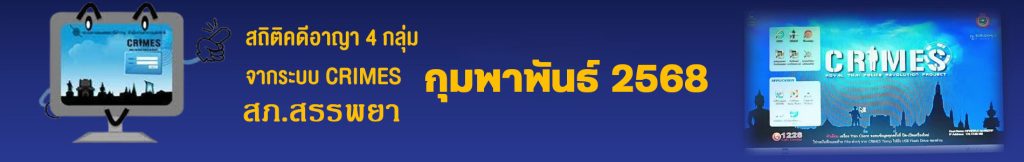 • ข้อมูลผลการดำเนินงานในเชิงสถิติด้านคดีอาญา 4 กลุ่มตามระบบ CRIMES เดือน ก.พ.68 ในรูปแบบไฟล์ PDF