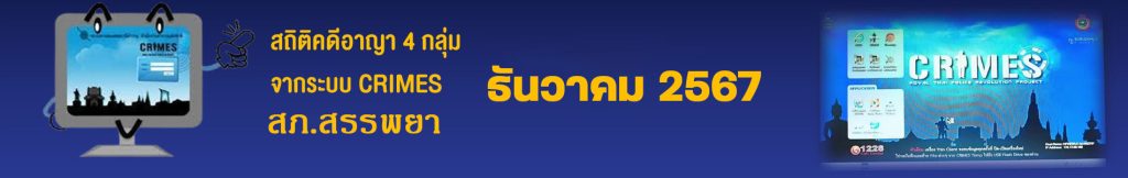 • ข้อมูลผลการดำเนินงานในเชิงสถิติด้านคดีอาญา 4 กลุ่มตามระบบ CRIMES เดือน ธ.ค.67 ในรูปแบบไฟล์ PDF