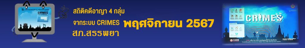 • ข้อมูลผลการดำเนินงานในเชิงสถิติด้านคดีอาญา 4 กลุ่มตามระบบ CRIMES เดือน พ.ย.67 ในรูปแบบไฟล์ PDF