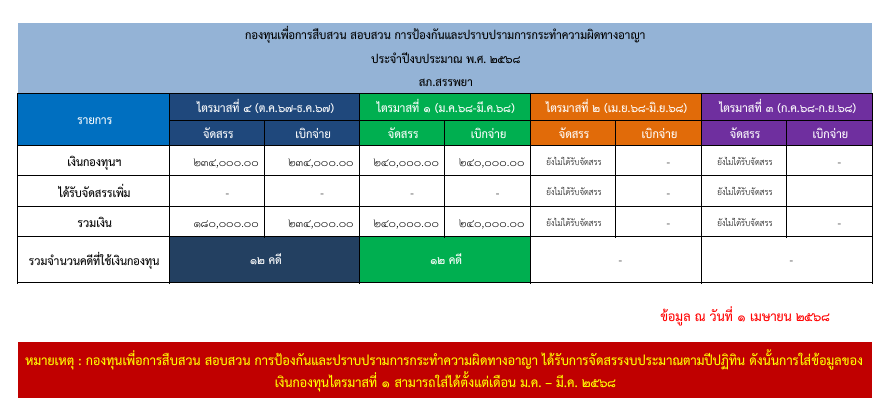 ข้อมูลเงินกองทุนเพื่อการสืบสวน สอบสวน การป้องกันและปราบปรามการกระทำความผิดทางอาญา