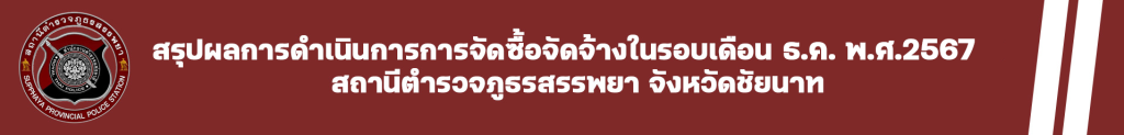 • สรุปผลการจัดซื้อจัดจ้างจำแนกข้อมูลเป็นรายเดือน เดือน ธ.ค.67 ในรูปแบบไฟล์ PDF คลิ๊กที่นี่