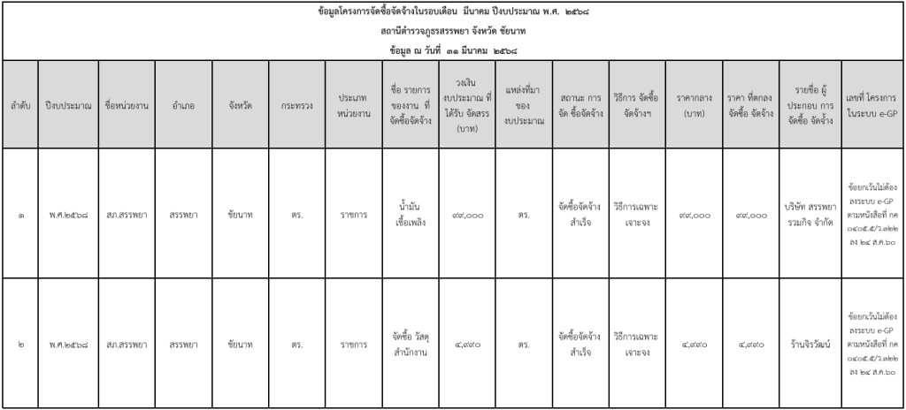 • สรุปผลการจัดซื้อจัดจ้างจำแนกข้อมูลเป็นรายเดือน เดือน มี.ค.68 ในรูปแบบไฟล์ PDF คลิ๊กที่นี่